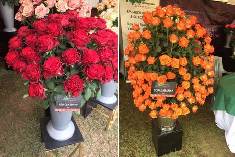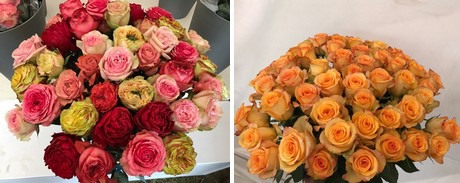 General assortment of United Selections. Some highlights were: Madam Cerise, (bright cerise mutation from Madam Red), Confidential Dark (dark orange mutation from Confidential), Pink Spring (light pink with very few thorns and strong traveller), Yellow Cab (pure and dark yellow variety with a bi flower), Sugar Love (high producer pink, very suitable for low altitude and well received in retail chain)