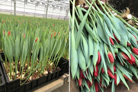 The demand for tulips for this year's Christmas is more or less the same compared to last year. "Currently, we are in the middle of the busiest days of the year and the demand for red tulips is high."