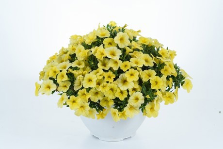 The compact Calibrachoa series of Danziger features controlled growth with little to no PGR. Bred and selected to be produced in 10.5 cm pots, Colibri™ creates tidy baskets full of blooms. This early series will flower in ten-hour days. Colibri™ is available in eight colors, including lemon, new for 2019. Colibri™ Orange is known for its outstanding, vivid color, much desired in the market.