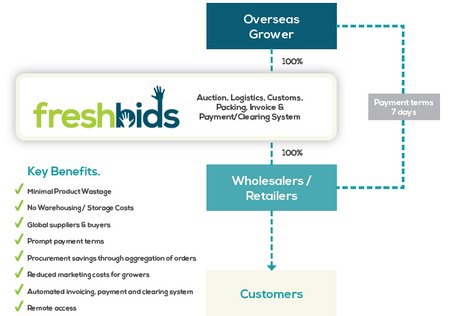 FreshBids runs live auctions on the internet for perishable products globally. These auctions are worldwide and international buyers can buy fresh produce direct from FreshBids' local and global growers. "The auctions are live Dutch auctions, which means that they have a starting price and the price reduces until the whole batch is sold or the grower’s reserve is reached. It’s a live auction and they typically take only 30 to 45 minutes," says Kashany.