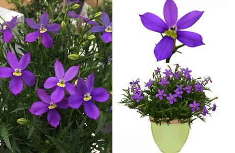 The Fizz N Pop Isotoma ‘Glowing Violet’ of PlantHaven has large blooms, up to 1,5" in size, which cover the plant with star shaped flowers that float just above the finely textured foliage. The plant has tidy compact rounded habit, 12" x 12" at maturity. Besides that, it is a low maintenance, drought tolerant and heat loving plant once established. It blooms from summer through fall (July - October) and works well in garden borders, mass landscape plantings and containers. (Visit PlantHaven to see more novelties at GroLink at 4107 West Gonzales Road, Oxnard, CA 93036. Click here to email the company for more information).