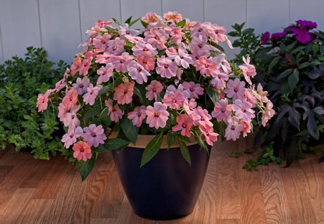 The SunPatiens® Spreaking Pink Kiss of Sakata Seed America offers unrivaled three-season flower power. According to Sakata Seed America, this plant represent a breeding breakthrough: robust, sun-loving, heat-loving impatiens that thrive in full sun or part shade and deliver continuous color from spring through hard frost. SunPatiens® are a good alternative to seed impatiens, offering non-stop color and 3-to-1 coverage in the garden. (Visit Sakata Seed America to see more novelties at 103 Boronda Road, Salinas, CA 93907. Click here to email the company for more information).