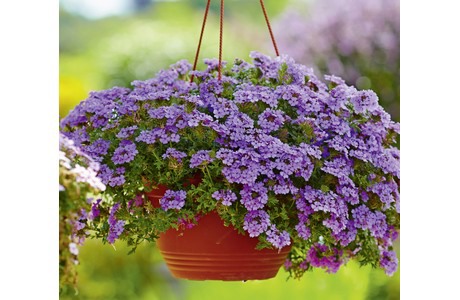 The Verbena x peruviana 'Vectura®' is a new variety of Volmary. All colors in this series a uniform, flat-topped, spherical habit. The brightly coloured flowers cover the entire plant. The dark green, finely feathered foliage provides a good pot cover.