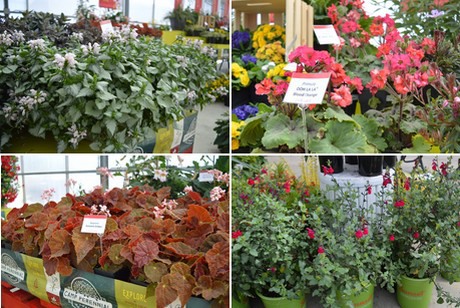 Clockwise: Lamium Hanky Panky has silver-white, metallic foliage with narrow green margins. It flowers all season long with baby pink flowers and is hardy to zone 4-9. Primula Ooh La La Blood Orange is an interspecific primrose series from Asia. The branched spikes are studded with many flowers from early spring to autumn. It is hardy to zone 8. Salvia x microphylla 'Killer Cranbarry has dark foliage and cranberry-red flowers all summer long. It is hardy to zone 7. It is the Sunset/Southern Living Magazine exclusive for 2017. Begonia Autumn Ember is a component plant with copper-porange foliage. It works well as a house plant or in containers.