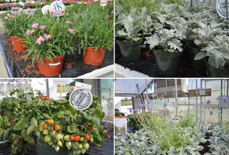 Clockwise: Dianthus Supra Pink is the result of interspecific Dianthus crossing. These compact, well-branched plants are hardy, flower early and also perform well at high temperatures. This year, it won the prestigious All America Selection Award (AAS). Dusty Miller Quicksilver has a natural dwarf plant habit and stays more dwarf than Silverado or older Silverdust. It combines a basal branching plant habit with finely indented silver colored leaves. Lavandula multifida Blue Torch is a fern-leaved lavender with a lavender-rosemary-pine scent. It is fast in production, can produce flowering gallon pots in under 16 weeks from seed in spring. Patio Tomato Sweet Valentines is a compact, well branched and trailing plant structure combined with many heart-shaped fruit. It only grows to 12-16 inch. Sweet Valentines is a Fleuroselect Approved Novelty.
