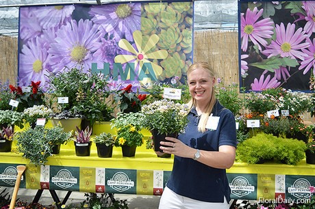 Carolyn Forro of HMA Plants holding the Nemesia French Connection Easter Bonnet. This plant blooms a lot and is fragrant.
