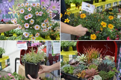 Clockwise: Argyranthemum Summit Pink has light pink flowers, mounding habit and has a good heat tolerance. Beedance Bidens Red Stripe is a variety bred by Suntory. The flowers are yellow with red stripes and will grow 9-11 inches in height and 3-4 in width. Euphorbia Firesticks is a new addition to their succulent program. Lavandula angustifolia Platinum Blonde is a variety that is on the market for just under a year. It has green foliage with gold edges and a compact and mounding habit. The color of the flower is purple.
