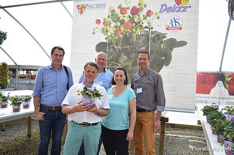 Adri Gillissen of ABZ Seeds with the team of Florensis, who were visiting the trials. Adri is holding the Delizz. This year, the Delizz will be fully introduced in the USA. In 2016, strawberry Delizz was decorated as National Winner at All America Selections (AAS). Delizz is the first ever strawberry plant to receive this prestigious prize, due to its outstanding outdoor performance in many climate zones of North America.