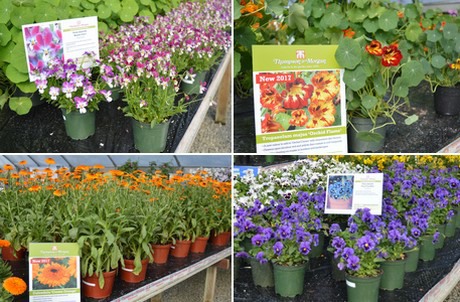 Clockwise: Viola 'Bunny Ears' are violas that retain that classic pansy face beneath unusually long 'rabbit ear' top petals. It is a compact plant with a height and spread of 8 inches. It had been introduced last year and new colors are in the pipeline. Tropaeolum majus 'Orchid Flame' is a new color added to the 'Orchid Cream'. The flowers are bicolored; red and yellow and mature to rich burgundy. The final garden height is 12 inches. Viola hybrida 'Fou Frou Blue' has frilly blue flowers. According to Dodsworth, there are not much of these kind of pansies on the market. It was first showed last year, but the seeds are available this year. Calendula 'Crown Orange' is a Fleuroselect novelty winner and has, unlike many other calendulas fully double blooms.
