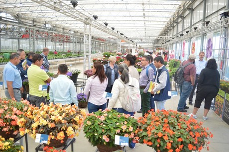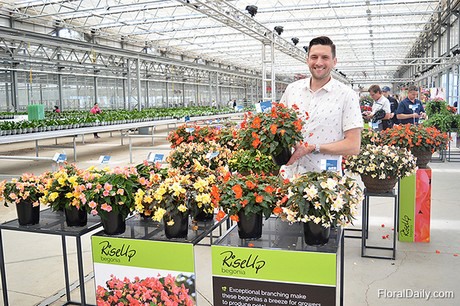 Chris Berg of Westhoff presenting the RiseUp Begonia. The flowers are above the pland and these begonias do not have to be pinched. As the flowers are not so heavy, they do not break off during transport. The RiseUp is not only a new collection, but is the first begonia collection ever for Westhoff.
