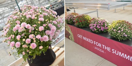 Left picture: Jasoda Pink Improved is an, as it is in the name, improved version of the Jasoda Pink, that was introduced two years ago. This variety doesn't turn white anymore. Right picture: The Jasoda family comprises six colors and has a response time of 7 weeks.