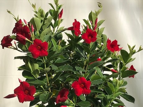 Mitebuster Red is a compact, upright bush mandevilla that is naturally resistant to mites, a common problem that plagues mandevilla production in the nursery, at retail and for home owners. Mitebuster Red is also naturally resistant to leaf spot, another common problem.