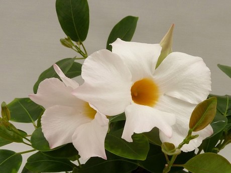 Six years ago, Suntory introduced Sun Parasol Garden Crimson, their first bedding plant mandevilla bred for 4-inch pots. Plants have powerful branching with low breaks, making the Garden series very well suited to landscapes and hanging baskets. Now there is the new Garden White, a companion to Garden Crimson.