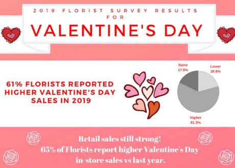Interesting is the fact that many florists (65%) reported higher Valentine's Day in-store sales vs last year, which means that retail sales are still strong.