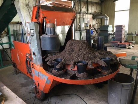 1996 Mayer 1010 potting machine at Northwoods Nursery was still fully operational when they made the decision to upgrade to have the benefits of the newest technology.
