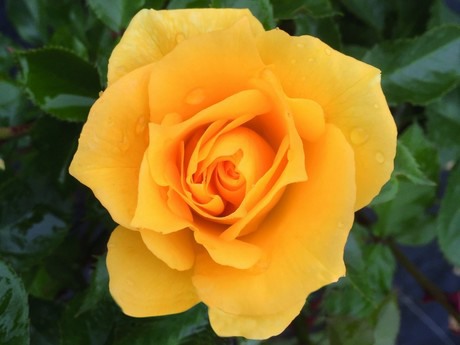 Rose Friends is a Hybrid Tea, with buttercup-yellow flowers and a mid-strength fragrance. The yellow blooms contrast against dark green, glossy foliage. The Friends rose grows to a height of approximately 90cm.