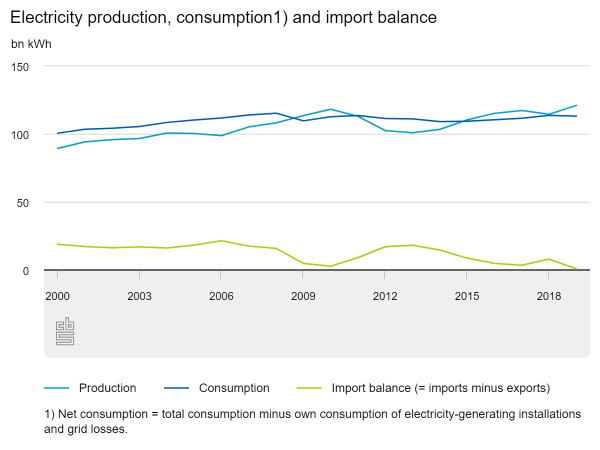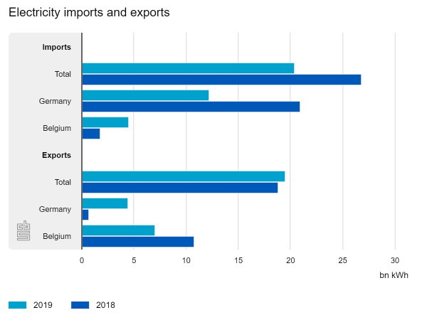 The opposite was the case with respect to Belgium. Last year, electricity imports from Belgium were up by 2.8 billion kWh, while exports were down by 3.8 billion kWh.