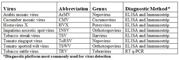 Table 1. Viruses included on Agdia’s Hosta testing screen
