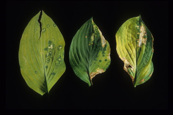 Orthotospoviruses known to infect hostas include Impatiens necrotic spot virus (INSV) and Tomato spotted wilt virus (TSWV). In addition to mechanical transmission, both viruses are transmitted by multiple species of thrips (order Thysanoptera) in the garden and greenhouse. Thrips feed on a wide range of plant species, including herbaceous perennials, bedding plants, annual horticultural crops, row crops and several weedy species. Moreover, these viruses are known to infect over 1000 species of plants throughout the world. The range and diversity of host-virus-vector interactions can facilitate epidemics in regions of the country where thrip populations are high.