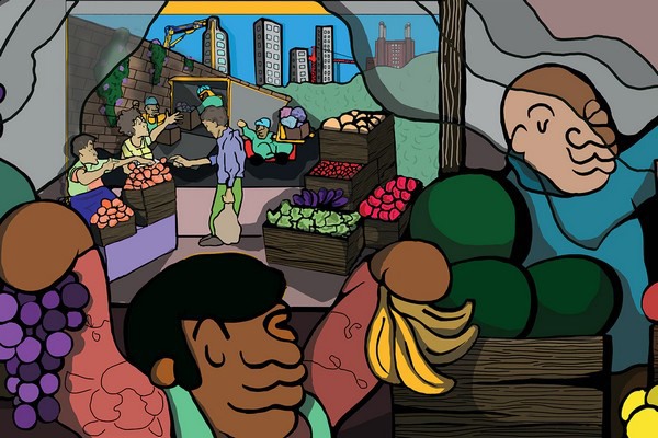 This year saw an all-time high in submissions, as artists from around the world competed for the opportunity to design the artwork, inspired by the fresh produce that New Covent Garden Market is famous for alongside the market’s physical context and communities.