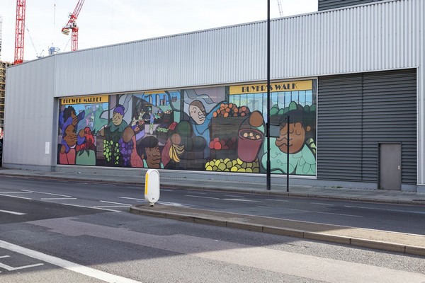 A bright, new mural artwork entitled 'Bloom!' is now on display on the facade of New Covent Garden Flower Market, highlighting the importance of our iconic market and the people who work within.