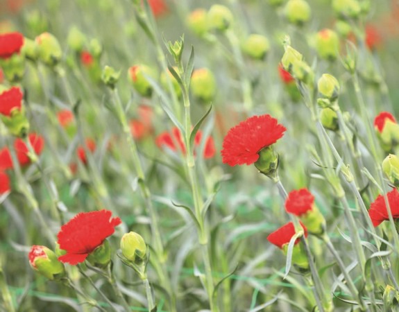 Of course, the ideal way to produce carnations irrespective of prevailing climate and weather is within environmentally controlled greenhouses. Ideal climatic requirements for carnations are a cool climate with a daytime temperature of 18 to 24°C and a night-time temperature of 10 to 15°C. The most suitable Relative Humidity (R.H.) falls within the 70-75% range. Under environmentally controlled conditions carnations can be successfully grown throughout the year. Well-drained red loamy soils with a pH of 5.5 to 6.5 are ideal.