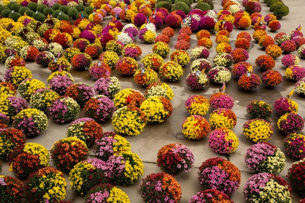 - 160 bicolor and tricolor mums in 2-gallon pots