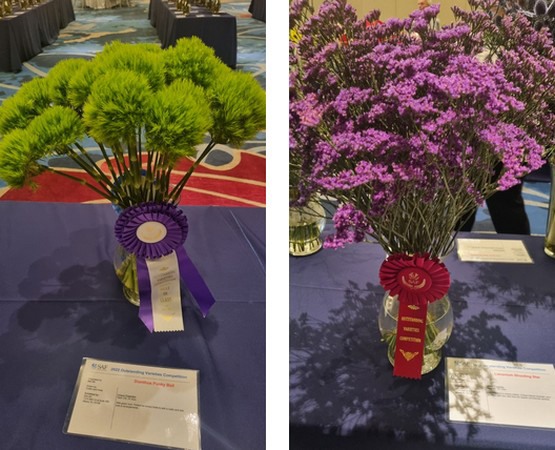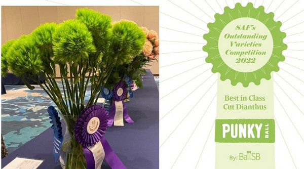 At the 2022 SAF Convention at the Hilton Hotel in Orlando last week, Ball SB participated in the Outstanding Varieties Competition, where they won the Best in Class in the Cut Dianthus Category with Dianthus Punky Ball and a Red Ribbon with the Limonium Shooting Star.