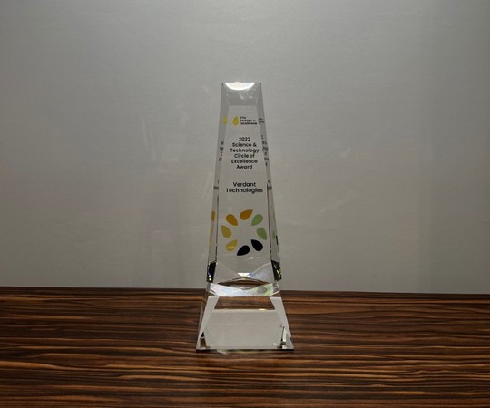 Verdant Technologies was awarded the International Fresh Produce & Floral Association (IFPA) Science & Technology Circle of Excellence Award at this year’s Global Produce & Floral Show in Orlando, Florida. Each year, the IFPA selects one individual or organization that solves business challenges within the produce and floral industries through the application of scientific and technological advancements to create better products, processes, or value to customers.
