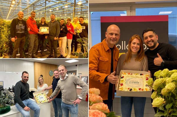 From Friday 18 November, Bernhard Rozen, Berg RoseS en Holla Roses will offer their entire auction offerings on Online Flower Auction (OFA). With this exclusive offering, OFA is taking an important step towards further expanding the clock with a diverse range of growers and varieties while promoting exclusivity. To celebrate this milestone, a cake was brought to all three nurseries on Friday.