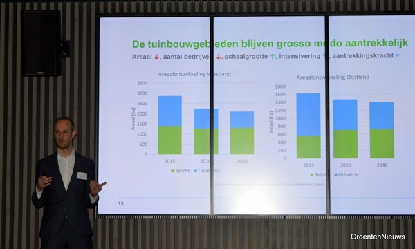Jeroen outlined some images from the report 'electricity fluctuates, greenhouse horticulture balances'. He indicated that towards 2040, Oostland in particular still sees growth potential for lighting, partly because this greenhouse horticulture region currently lags somewhat behind other areas in this respect. The energy experts foresee the biggest changes in the field of electricity after 2030. Until then, changes remain 'limited,' and CHP still has an important role to play in balancing the electricity grid.