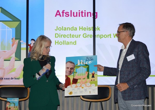 Jolanda handed Nico a version of the booklet launched last year by Greenport West-Holland, which included Nico's photo' for the occasion. Menno Laan received the same gift.