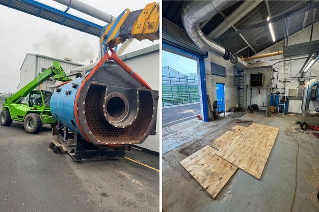 Remarkable photos from the UK. James Broekhuizen, nursery manager at Anchor Nurseries and chairman of the Cucumber and Pepper Growers Association, shares how a 50-year-old boiler has finally been removed from a boiler house.