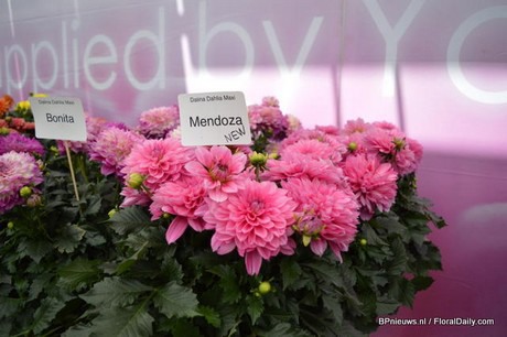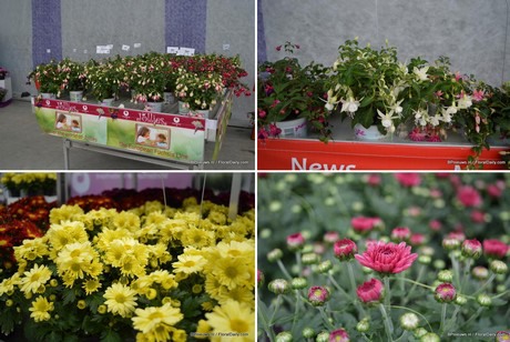 A couple of novelties of Brandkamp: Upper left:The Jollies of Brandkamp. Three colors are added to this series: La Grande Provence, La Grande Alsace and La Grande Corse. This series flowers continuously and has many flowers. The Jollies are very popular in the UK. Upper right: The small flowered Jollies series has six new colours. The Toulon for example has white flowers with a green tone. Bottom left: The Pemba Canari is added to the Pemba series of Brandkamp. The series flowers in 4-7 weeks. Bottom right: The Branfountain Purple is added to the mini mums series. The flowers bloom at the same time and can be cultivated in a pot.