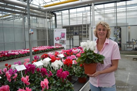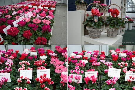 A couple of novelties and existing varieties of Varinova: Upper left: The Facila is a new mini series of Varinova and consists of seven colors. The plants have a round shape and many flowers and leaves. This series will replace the Musical series. Upper right: The Pythagoras is characterized by the use of 3 colors of Cyclamen in one pot. The concept was introduced a couple of years ago and is now cultivated by Eflorie, a Dutch grower. Photos on the bottom: The Melody outdoor minis are suited to placement outdoors. This series consist of 13 colors, including 4 shine colors. The flowers of these shine cyclamen have a white edge, this makes them 'shine'.