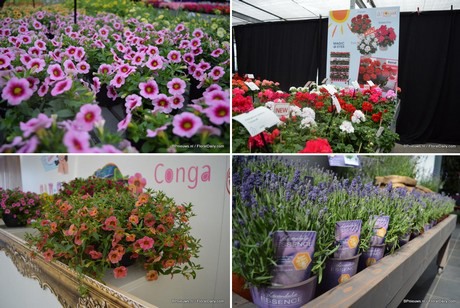 Some novelties of: Upper left: The Conga: Pink Kiss (Calibrachoa x hybrid) is compact and very suitable for garden tables. It will be on the market in spring 2016. De Conga series consists of 4 colors. Upper right: Three new colors are added to the Toscana series of Florensis; white (Eva), red (Paula) and pink (Kasecha). Bottom left: The Chameleon of Florensis. It flowers richly and wild, like the Can Can. The color of the flowers change during the summer. The Chameleon series consists of different colors. Bottom rigth: The Lavender with a new concept; Essence. With this concept, Florensis is trying to increase the popularity of the lavender in the market. Essence is winter hardy and flowers 10 days earlier than the well-known Hidcote.