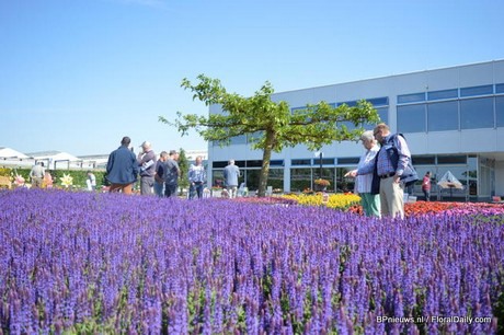 Florensis did not only present their varieties inside, but also outside. People are looking at the trial garden of Florensis.