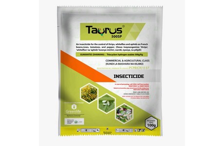 - Taurus 500 SP: a novel insecticide that is absorbed into foliage and roots and is translocated acropetally in the plant. It is effective against, thrips, white flies, and aphids in roses