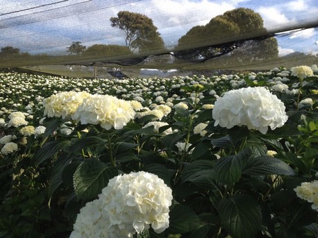 Cultivation of White Hydrangeas.