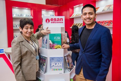 Rogelio León (on the right) presenting his book at the ESAN ediciones booth