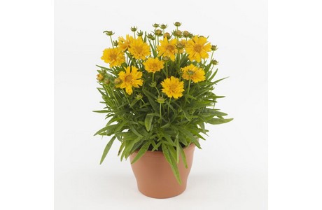 This bright newcomer is two to three weeks earlier than Kieft Seed's Early Sunrise and other comparable varieties. "Get this favorite perennial class into the store before any other compact, semi-double yellow coreopsis. Clear golden yellow flowers are large. Ideal for quart and 1-gallon production in Spring and Summer with 13-hour critical daylength."