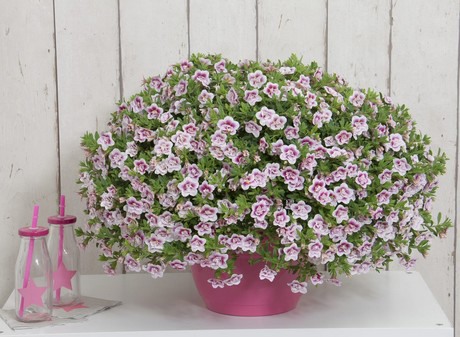 The MiniFamous Uno series is an early-to-finish, medium-compact calibrachoa with uniform flower timing across the series. "They grow well in quart and gallon containers, but also thrive in hanging baskets as part of Trixi® combos. Pinktastic features heavily contrasted double flowers and a ball-shaped habit that is half trailing." Besides, it was the Fleuroselect winner for 2017.