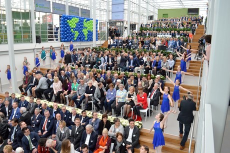Queen Maxima opened the World Horti Center in Naaldijk. Also present were the minister for Agriculture, Nature and Food Quality Carola Schouten, BNN presenter Jan Versteegh, the usual suspects from the horticultural sector, a number of invitees, participating companies, representatives of MBO Westland, various involved government agencies and finally a lot of press.
