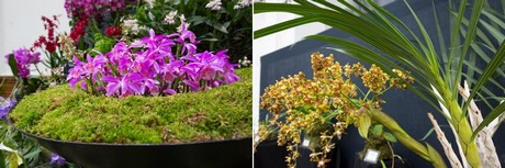 Bowl of Pleione ‘Tongario’ and the palm-like Cyrtopodium palmifrons (Source: rhs.org.uk)