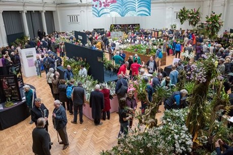 The bowl of Pleione ‘Tongario’ of Orchid Society of Great Britain took the award for Best Hybrid Orchid and the Best Specimen Orchid was awarded to Akerne Orchids from Belgium for its palm-like Cyrtopodium palmifrons. Helen Millner’s educational display was awarded Best Orchid Exhibit, showing how orchids have adapted to entice flies as pollinators. Click here to see the entire list of Floral Awards.