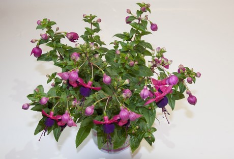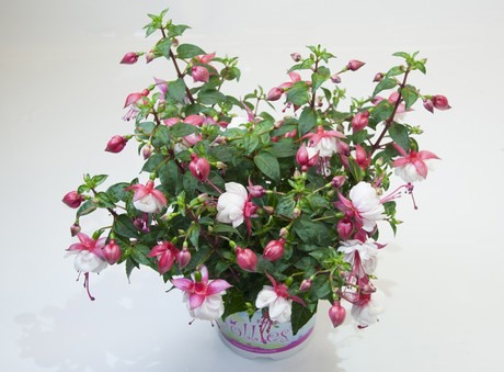Jollies Biarritz: upright growing with filled red/white flowers. In the segment of filled flowers, Jollies Biarritz fuchsias flower very early.