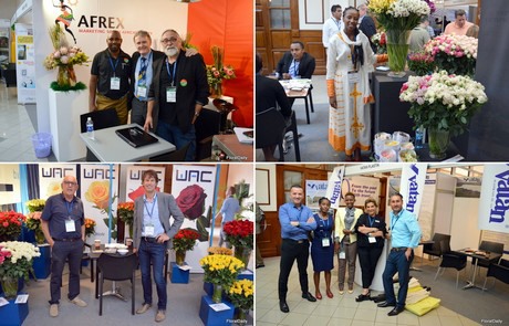 Kimathi Kabaka (Cargolite), Dave Kaplan (Afrex Trading) and Amnon Zamir (Cargolite), together in the booth of Afrex and Cargolite; Aline Musime from Ethiopian grower Greenhouse Horizon, one of a handful (7) of Ethiopian growers presenting at the show together; the team of Vatan Plastik; and Rose breeder WAC - Wagagai Agriom Combination - at the fair represented by Richard McGonnell (within floriculture also known for organizing the Naivasha Horticultural Fair) and Edo Kolmer.