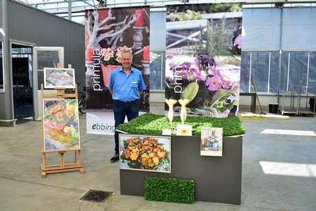 Guenter Kemper of Ebbing Lohaus at the Westhoff location presenting the Primula young plants.