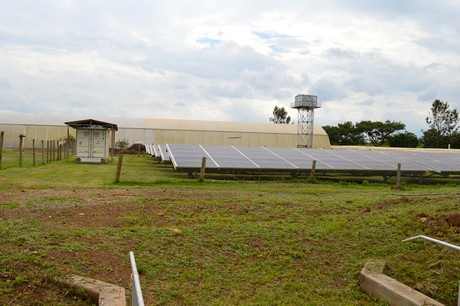 Red Land Roses is a farm striving to stand out in matters of sustainability. In this respect two things are especially noteworthy: the drain is cleansed by means of UV light and solar panels are installed. Firstly, the grower actively tries to recycle as much drain water as possible. All water is pumped back to one shed, where multiple UV water purification systems are installed. Funny to notice is that with each expansion of the greenhouse extra units had to be installed, giving the space a somewhat chaotic look (see photo below).