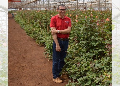 At this farm a wide variety – over a 100 – T hybrids, sprays and garden roses are grown. In Thika the farm exploits 20 hectares of greenhouses, at another location 8 more hectares are employed. A remarkable feature: roses are harvested 3 times per day, in a rather ‘late’, i.e. ripe stage. Contrary to what one might expect, this should benefit vase life later on. Stefano Banella, who is in charge of crop protection, explains. “You should stay sharp, of course. You should not miss the moment, the rose should not be overly ripe. However, often roses are cut too early, with the result of not opening up fully. We discovered with better observation and harvesting more often better quality can be guaranteed.”